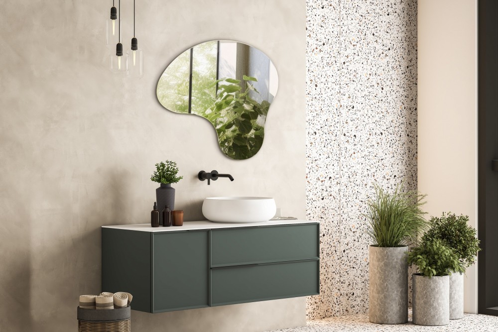 Se desideri un effetto audace, lo specchio da bagno può anche avere una forma insolita - ad esempio asimmetrica o organica, che può conferire allo spazio un'espressione unica e di design.